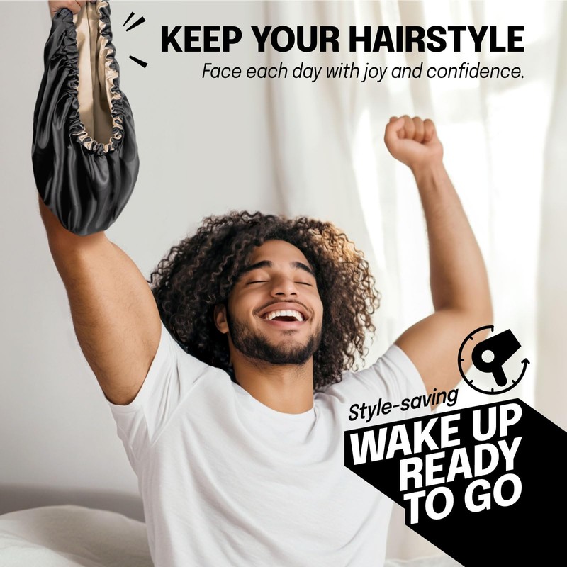 Fittia Satin Bonnet for Men Sleeping: Large for Long Braid Curls, Reversible ...