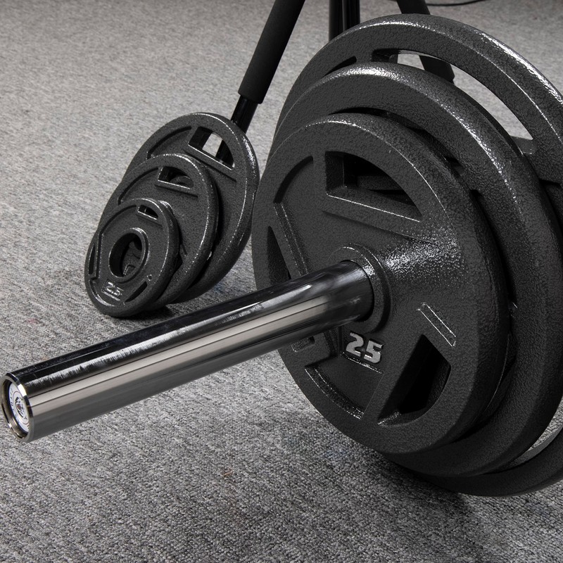 • Made of solid cast iron with a 2-inch center hole, it fits Olympic bars with diameter of 2". It can also be used with 2" dumbbell bars.