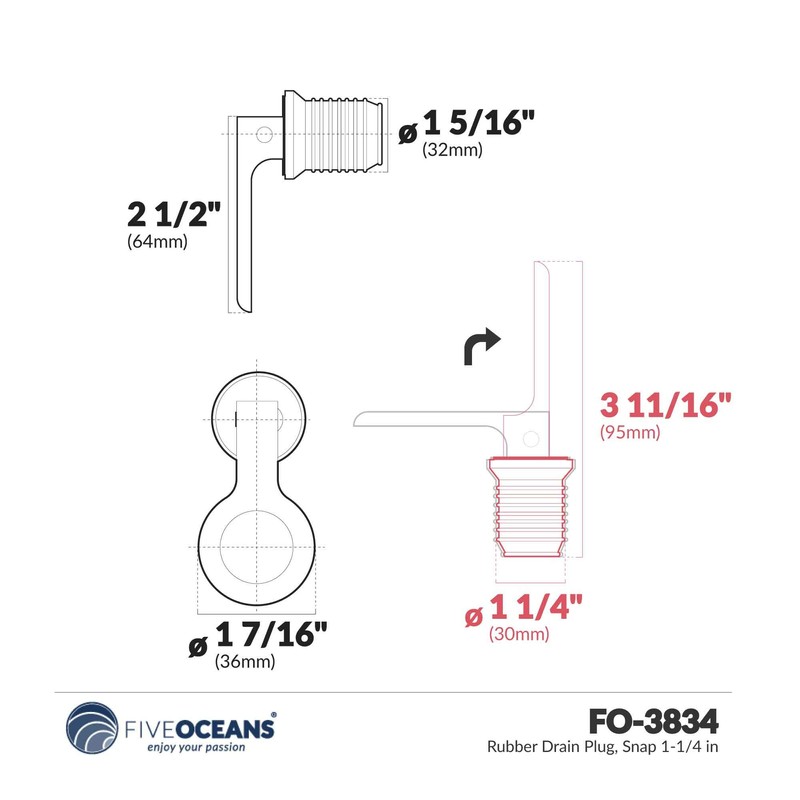 • It contains a retention system that keeps the plug from getting lost and allows you to drain the boat's bilge without complete removal of the plug