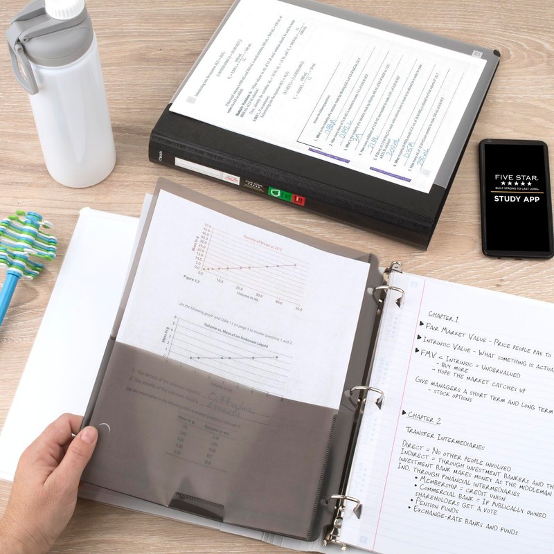 - Scan, study and organize your notes with the Five Star Study App. The clear front pocket on the binder makes any paper compatible with the Five Star Study App, so you can access your notes, handouts and more from any device.