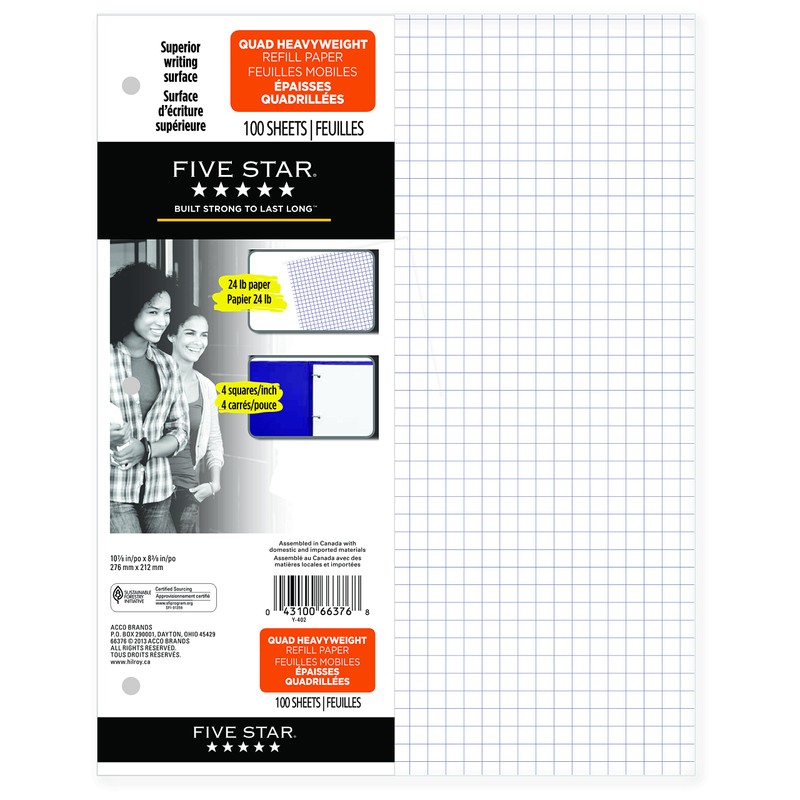 - Premium heavyweight quad refill paper, 4 squares to 1 inch