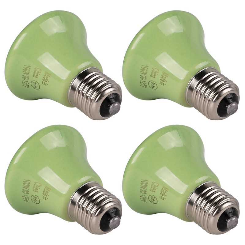 FIVEAGE 100W Mini Ceramic Heat Emitter No Light Emitting,Reptile Infrared Small Heat Bulbs for Turtle,Chicken, Brooder Coop, Reptiles and Amphibians - 4 Pack(Green)