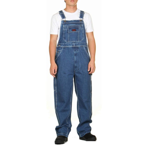 FiveBrother Enzyme Washed Denim Bib Overalls, 34W x 34L