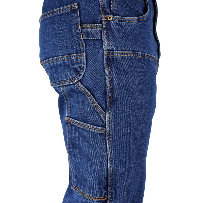 The FiveBrother Stone Washed Double Front Logger Dungaree is designed for those who intend to do some serious work. These relaxed fit dungarees come with superior durability features which include, FiveBrother’s signature triple needle stitching, reinforced deep set front and back pockets, extra wide belt loops and anti-rust buttons and hardware. The 14 oz. heavyweight 100% cotton denim offers durable protection that resists rips and tears. The chaps also conveniently have cleanouts at the bottom. This design comes with plier and ruler pockets, a hammer loop, a holder for your tape measure or cellphone, and can be easily cleaned through machine washing and drying.