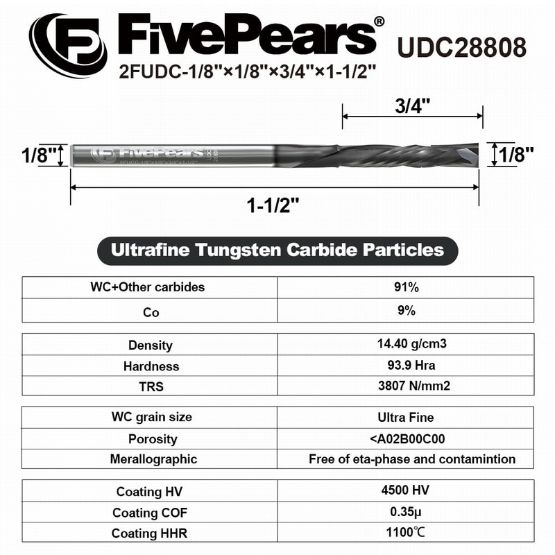 - GRADE ROLLING:FivePears' solid carbide spiral Router bits are graded professional grade, industrial grade quality control to ensure the best performance, 91% ultrafine tungsten carbide particles and 9% cobalt content design make the bit more wear-resistant, the same grade for high quality