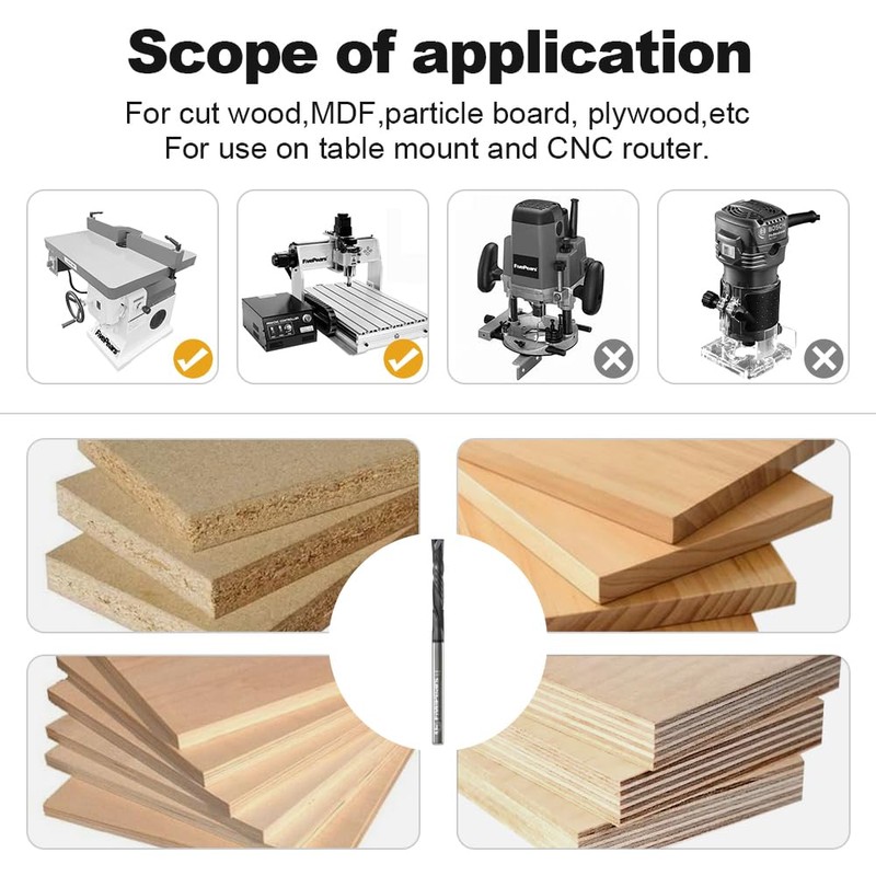 - WIDELY USED:The solid carbide spiral Router bits are suitable for CNC routers and table routers as well as any brand of routers with 1/8" collets. For cutting plywood, OAK, MDF, and any hardwood working and keep sharp after multiple uses