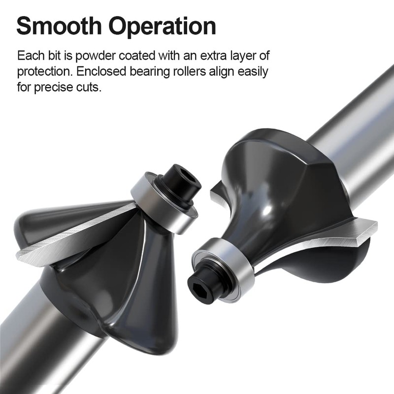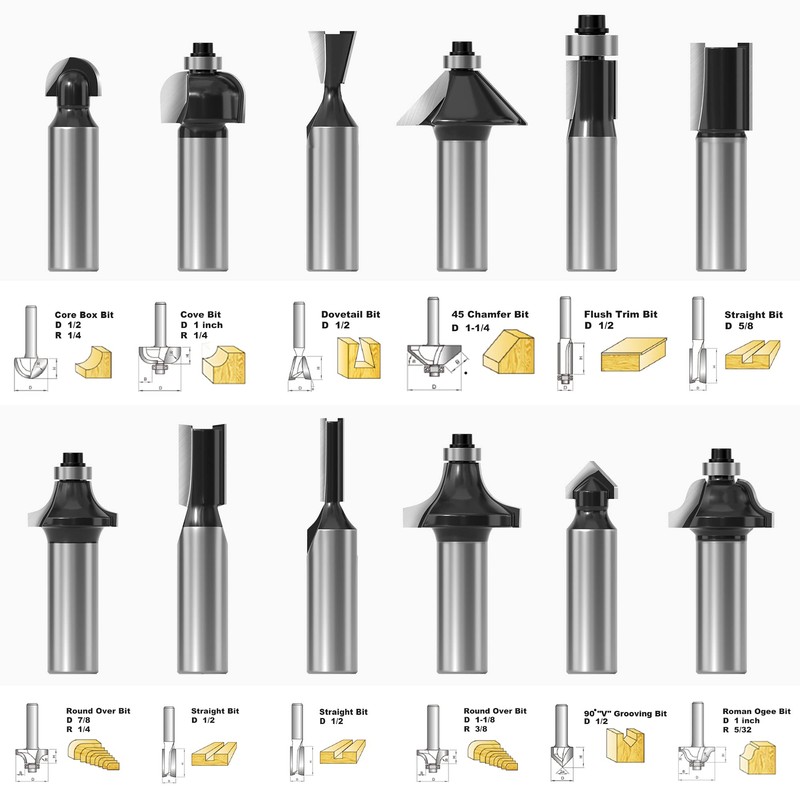 - ★ MULTI-FUNCTIONAL BIT SET : 12pcs/set (1/2" shank) included,different cutter types, work out a different effect. It is perfect for woodworking, edging, trimming, grooving, veining wood projects, and ideal for carpenters and hobbyists of all experience levels.