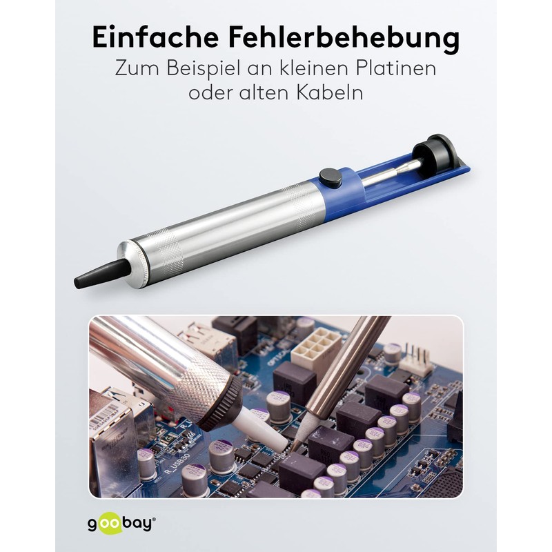 - The long, thin desoldering tip can also be used on very tightly fitted PCBs