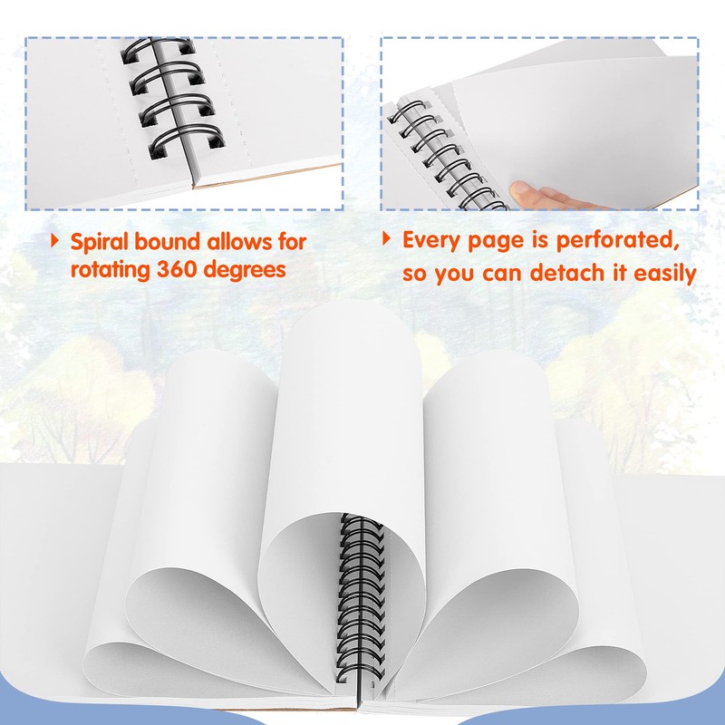 • 【TOP SPIRAL BOUND SKETCHBOOK】Designed with sturdy spiral bound, so you can flip pages smoothly & easily. Moreover, every page is perforated and you will have no trouble detaching paper. Keeping the papers nice & in good shape at all times.