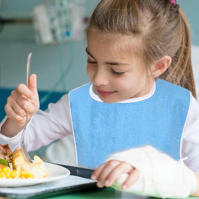 Fiyuer Bib for Adults, Seniors, Reusable, Washable, Waterproof Terry Towelling Bib, Adult Bib, Easy to Clean, Unisex Clothing Protector for Mother and Dad, Light blue-4
