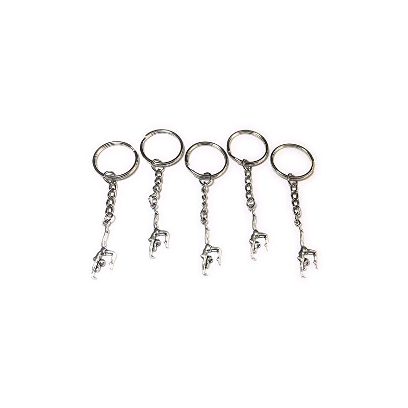 • Set of 5 antique silver tone gymnast charms (3.1 x 1.0 cm), each hung on a silver tone keyring