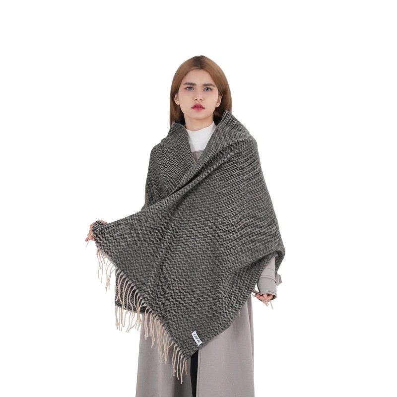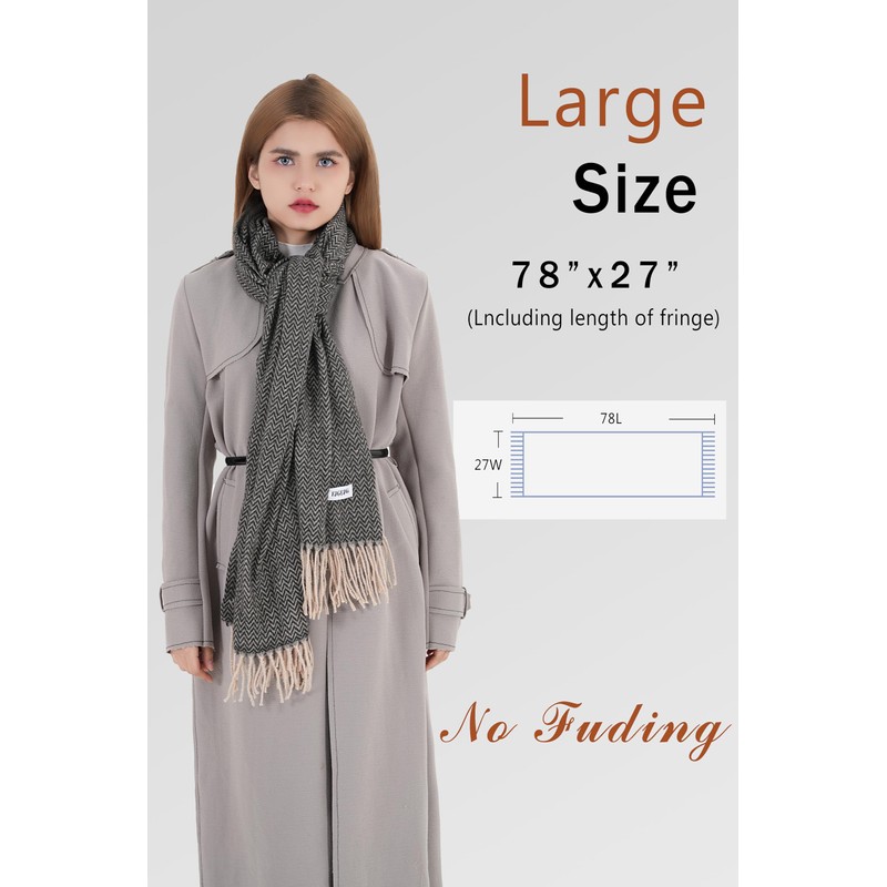 - [oversize] The oversized scarf,27 inches wide (70 cm) x78 inches long (200 cm) and 5 inches (12 cm) including the fringe, can be worn wrapped like a scarf or draped like a cape.
