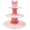 - 3.Easy to Assemble: The pink bow party cupcake stand no need to use any tools, you just slide small base with the top slit into the larger base with bottom slit and open, take the largest circle and slide down to the bottom notch, repeat with midsize circle and end with the smallest circle, you will get a 3-tier pink bow cake stand