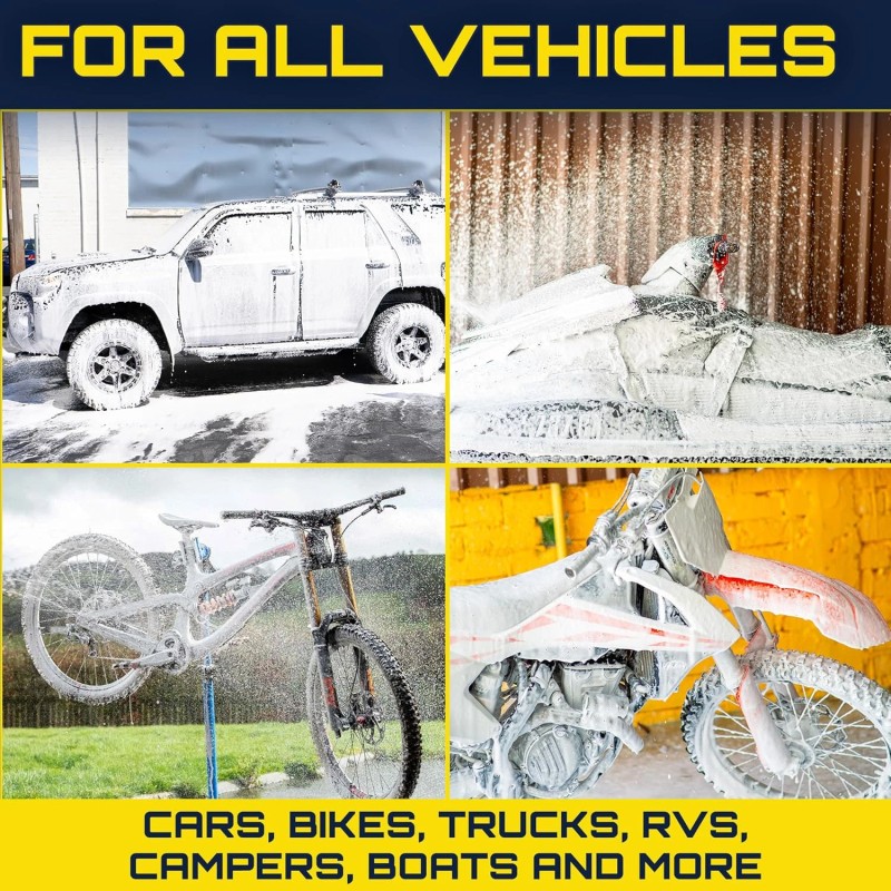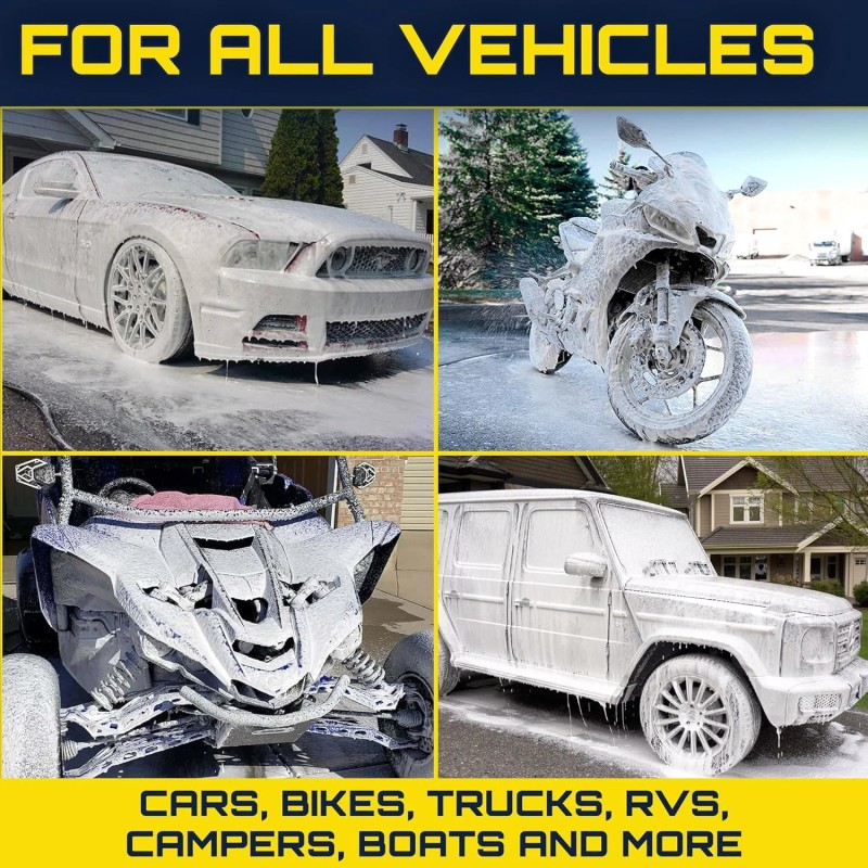 - Thick foam generated from just 2 soap sheets or high-sudsing car wash soap for maximum cleaning power.