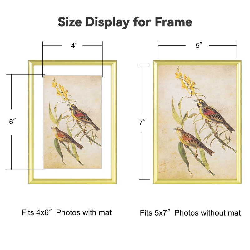 - 【Dimensions and functions】: This picture frame can display 4x6 inch photo with mat or 5x7 inch picture without mat. Horizontal and Vertical for Wall Hanging and Tabletop, 5 by 7 Apply to Certificate Document
