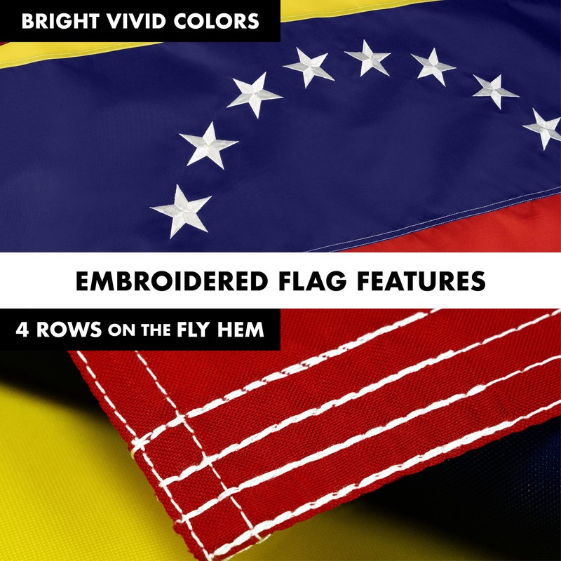 - DELUXE PACKAGE: G128 is including a 3x5 ft embroidered double-sided Venezuela flag with brass grommets, for this deluxe package!