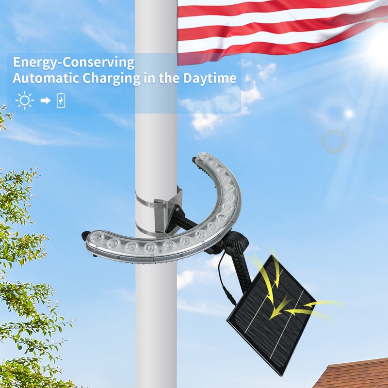 1. Make sure the LED flagpole light is full of solar power for maximum lighting effect. It is recommended to charge it under direct sunlight for 2-3 days before the first use.
