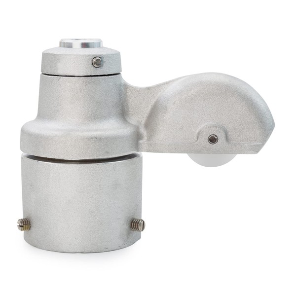 This cap-style revolving single pulley truck is made of cast aluminum, with a cast nylon pulley wheel. It secures to the pole with 3 stainless steel inset screws. This gives them strength and durability. This system also utilizes a self-lubricating ball bearing assembly made of stainless steel.