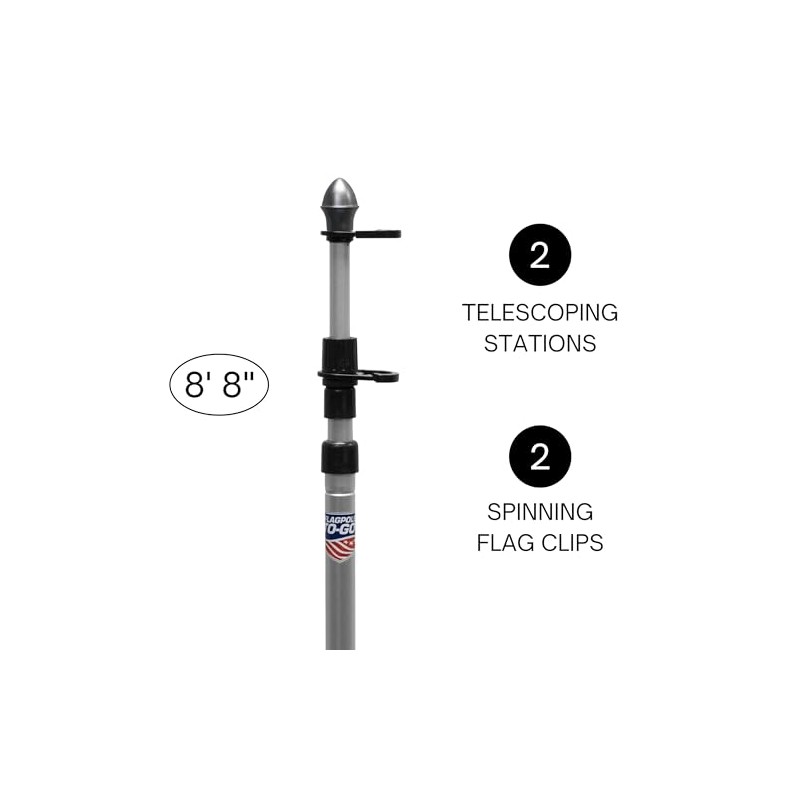 • Anti-furl clips allow you to fly any size flag up to 3' x 5'