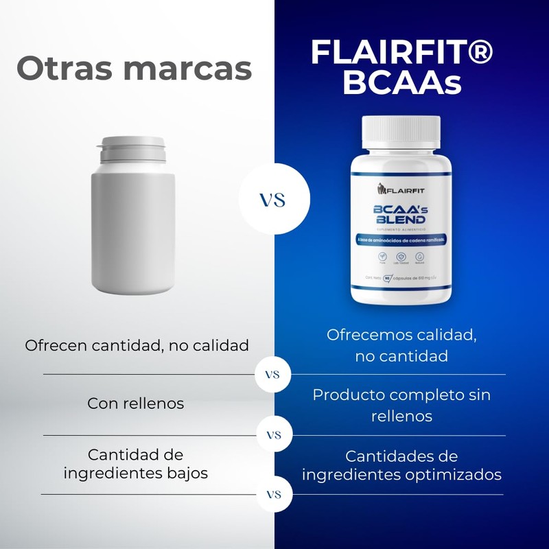 FLAIRFIT® Suplemento En Cápsulas, Formulación Premium, BCAAs Blend, Aminoacidos para Rendimiento y Recuperación para Antes y Después del Entrenamiento, 90 Cápsulas