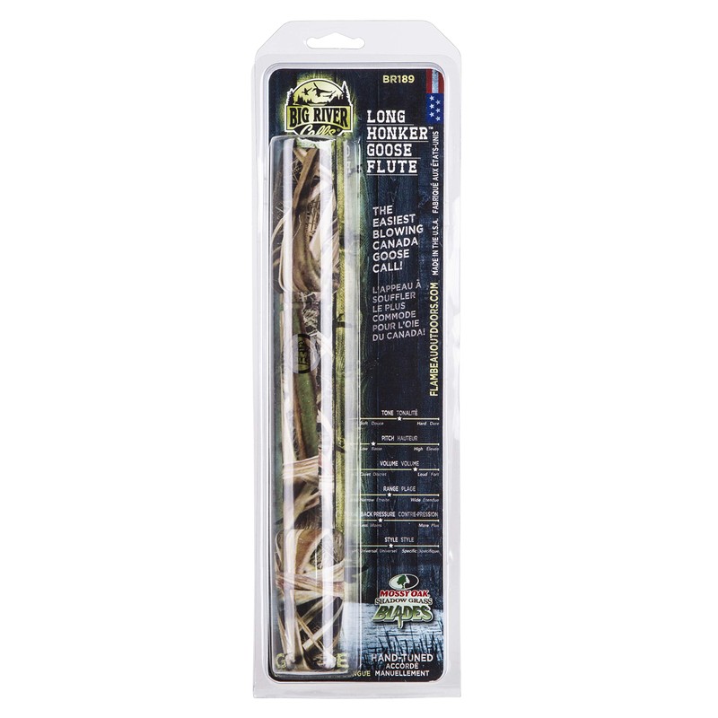- MOSSY OAK CAMO FINISH: The Flambeau Outdoors Long Honker Goose Flute features a Mossy Oak Shadow Grass Blades camo finish for a natural blend over a camo coat.