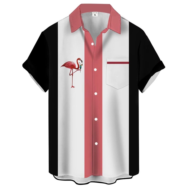Flamingo Bowling Shirts for Men Print Short Sleeve Casual Button Down Beach Bowling Shirts