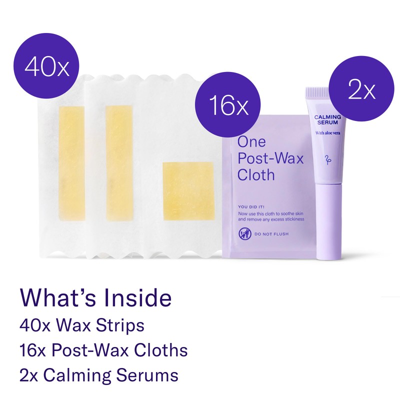 Get smooth at home with our soft gel wax strips, designed to grab even the finest and shortest of hairs from the root for long-lasting results. Our at-home wax kit includes at-home wax strips ( pulls total), step-by-step instructions, and post-wax cloths to soothe and calm skin. Our strips come ready to use, which means an easier, cleaner experience with no heating or slathering wax onto a stick. The wax strips are made with a wavy edge to easily separate the strips from each other. Our plush post-wax cloths are made with sweet almond oil to help you gently remove stickiness and restore skin after waxing. And if you're new to waxing, we're here for you. Each kit includes step-by-step illustrated instructions. We've thought of everything, so you don't have to!