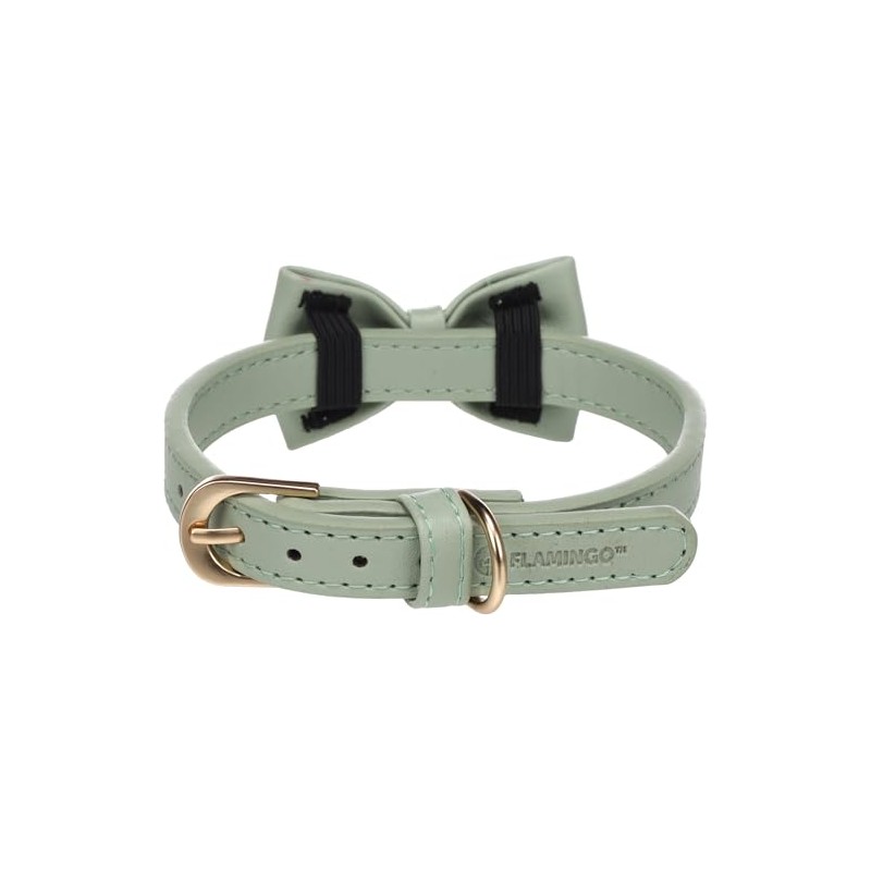- The Flamingo Nela Mint Green Bow Collar is the perfect choice for small dogs that deserve a touch of elegance. Made from high quality leather, it offers both comfort and a luxurious look. The adjustable size (29-35 cm) is ideal for smaller breeds of dogs and the bow design adds a charming touch. 👉 Ideal for dog owners who are looking for a stylish, practical and comfortable collar for their pet! 🐶