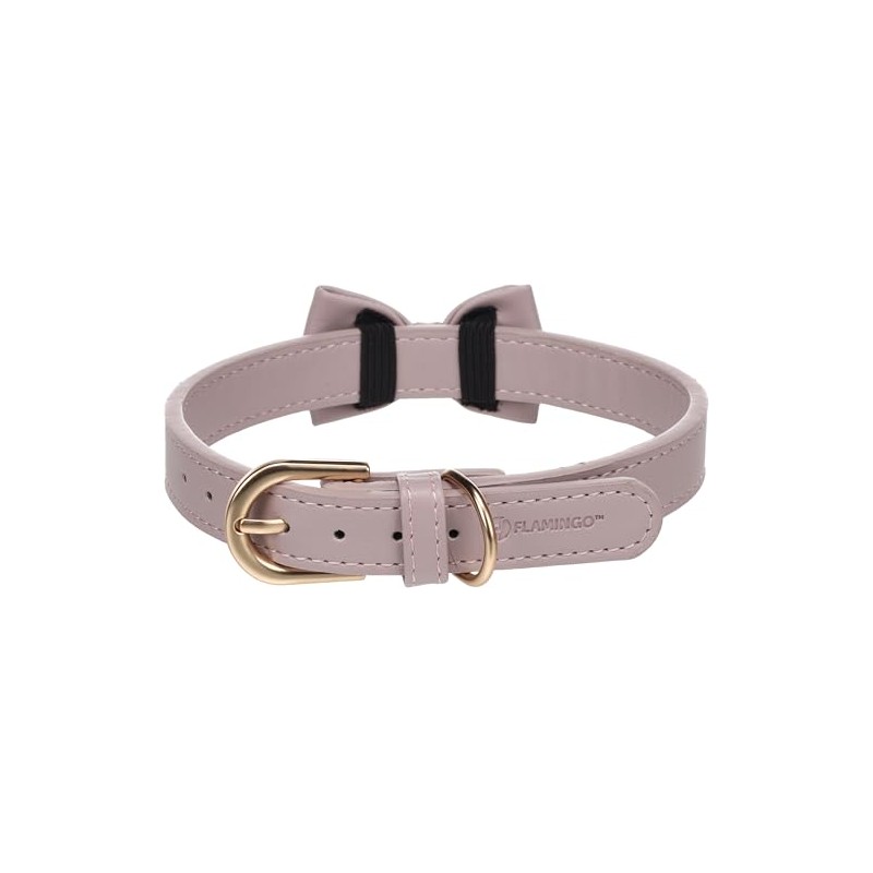 - The Flamingo Nela Purple Bow Collar is the perfect choice for dogs who love comfort and style. It is made of high quality leather that offers both luxury and functionality. The adjustable size (36-44 cm) fits many medium dog breeds and provides an elegant touch with the bow 👉 Ideal for dog owners who are looking for a stylish, practical and comfortable collar for their pet! 🐶