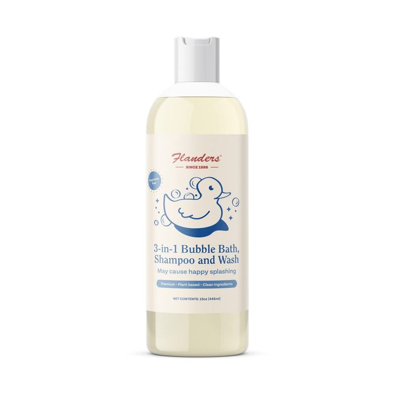 - Flanders 3in1 Bubble Bath, Shampoo and Wash was developed using plant based, clean, non-toxic ingredients for children 0 and up