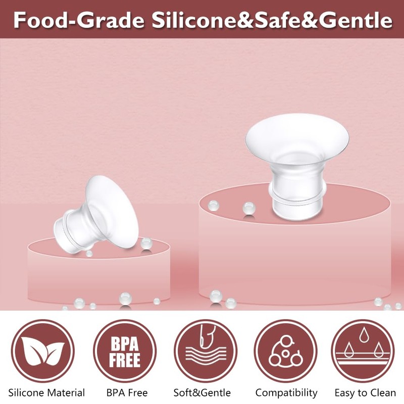 - 【Sanft und sicher】: Milchpumpenflanscheinsätze sind aus transparentem lebensmittelechtem Silikon, BPA-frei, sicher, weich und geruchlos, hautfreundlich für Mama und Baby. Flanscheinsatz aus weichem, bequemem Material, eng anliegende Passform bietet Komfort und effizientes Pumpen, um Brustwarzenschäden oder Irritationen zu vermeiden.