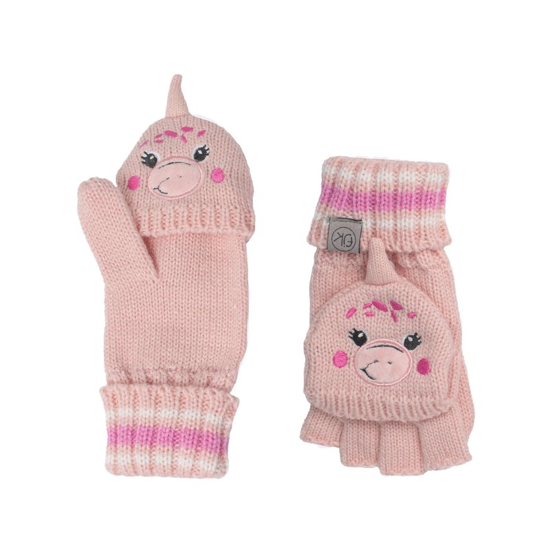 FlapJackKids - Knitted Fingerless Gloves wFlap DinoPink4-6Y+