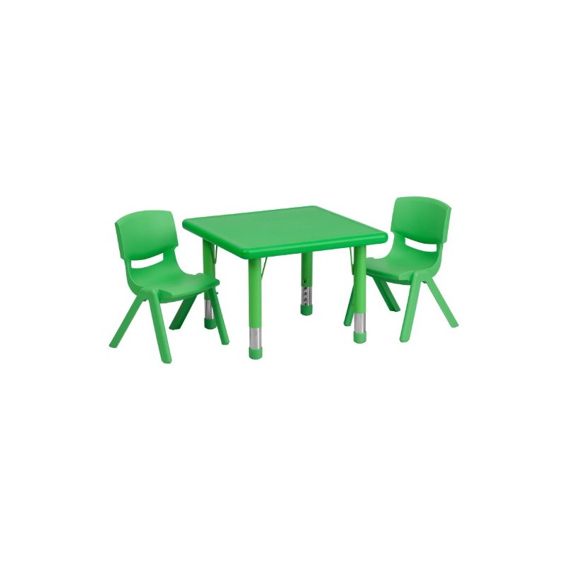 Shape your classroom into a collaborative learning space by placing these square table sets around the room that provide a space for a child at each end. Designed for safety around rambunctious toddlers, the table has rounded corners and the plastic stack chairs are constructed of metal-free materials. This activity table set serves as a play table or kids dining table in the classroom or home. Built for comfort, the shell chairs are a one-piece contoured designed to promote proper posture. Not only are these chairs designed properly, but they are lightweight so kids can feel independent by moving the chairs themselves. With this play activity table set setup in the playroom you're always prepared for play dates and birthday parties. Low in maintenance, these toddler chairs and activity table wipe clean with ease after snacks. This play activity table set will be your all purpose set for meal time, snacks, crafts and learning activities. As your child grows out of the 10" seat chair, replace with our 12" plastic stackable school chair or 13.25" plastic stackable school chair.