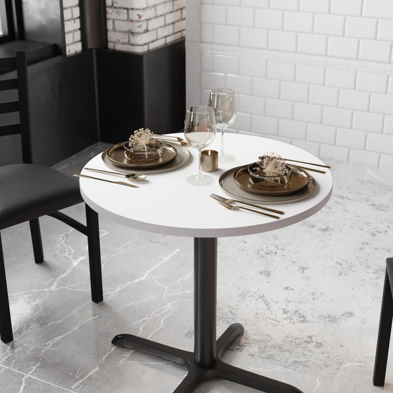 - CASUAL DINING >>> This indoor table top offers plenty of style to compliment your restaurant dining space. With a reversible top design just select the finish that best suits your establishment then add a compatible base. Seats up to 3 adults.