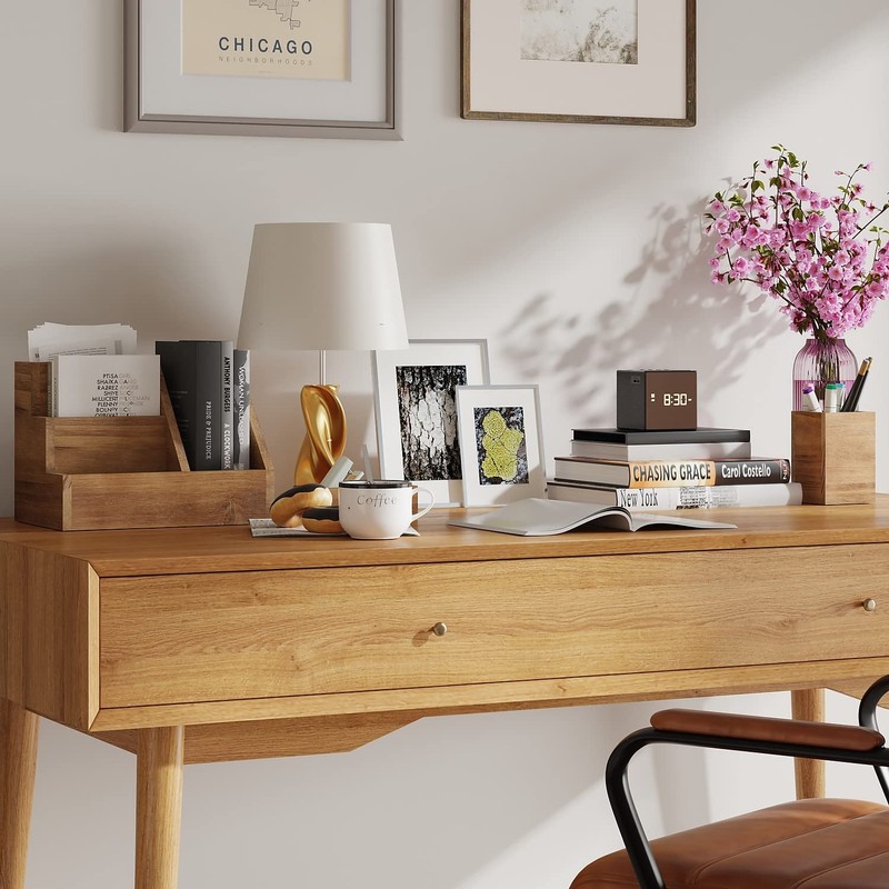 • 3 PIECE SET: Includes a main organizer for mail or makeup, a pencil/pen or makeup brush cup, and smaller 2 compartment holder for paperclips, straight pins, or blending sponges