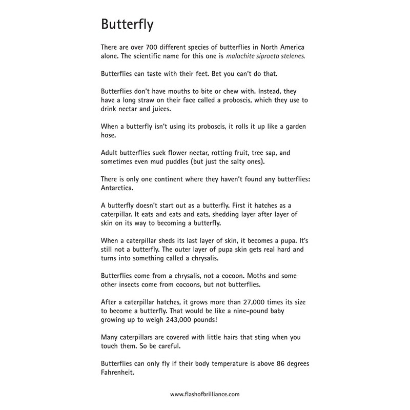 Capture your child's boundless curiosity with the captivating world of bugs! Nurture their fascination with these engaging and sturdy flash cards from Flash of Brilliance. Prepare for an adventure-packed summer as your little ones embark on a journey of discovery. Did you know that bugs hold incredible secrets? Contrary to popular belief, most bugs are not pests at all. In fact, they play a vital role in benefiting humans in numerous ways. These fascinating flash cards will introduce your child to the wonders of the insect kingdom, revealing the extraordinary contributions bugs make to our world. Among these remarkable creatures, there's one special insect that creates a delectable food enjoyed by all humans. Discover the secrets behind this delightful delicacy and uncover the fascinating process that brings it to our plates. Hold on to your hats for this mind-blowing fact: within a mere square country mile, the number of insects surpasses the global human population! Brace yourself for a world teeming with buzzing and crawling creatures that outnumber us all. Prepare to be amazed as you dive into the captivating world of bugs. Each card in this comprehensive set features a vibrant, full-color photograph on the front, showcasing the intricate beauty of these creatures. Flip the cards over, and you'll find a treasure trove of fun and intriguing facts waiting to be discovered. Share these cards with your kids time and time again, as each encounter promises new knowledge and endless entertainment. So, gear up for an unforgettable summer filled with bug-filled excitement! Get your hands on Flash of Brilliance's bug flash cards today and join us in nurturing your child's love for exploration and learning. Wishing you endless discoveries and joy, John Richardson