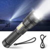 - Wide range of uses: This LED super bright flashlight is suitable for daily use, camping, hiking, biking, fishing, dog walking, home power outages, emergencies. COB white and red light on the side for emergency power outages and home work. Also useful for safety evacuation during typhoons and earthquakes