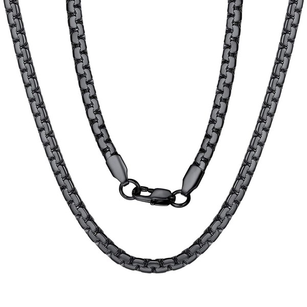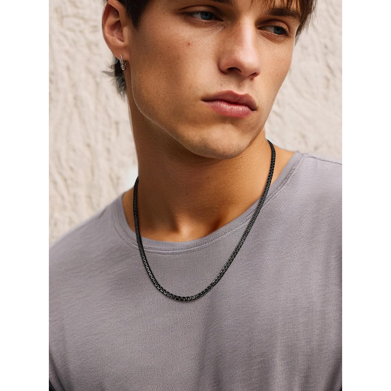 Flat Chain Male Necklace 24inch Stainless Steel Black