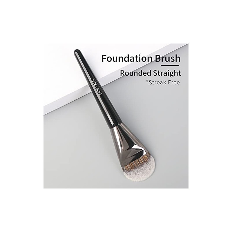 Flat Foundation Brush for Liquid Makeup By ENZO KEN, Large Wide Liquid Foundation Brush for Face, Oversized Cream Contour Bronzer Brush, DIY Facial Mask Brush Firm - Blush Wet Cosmetics Blending (820-L-Black)