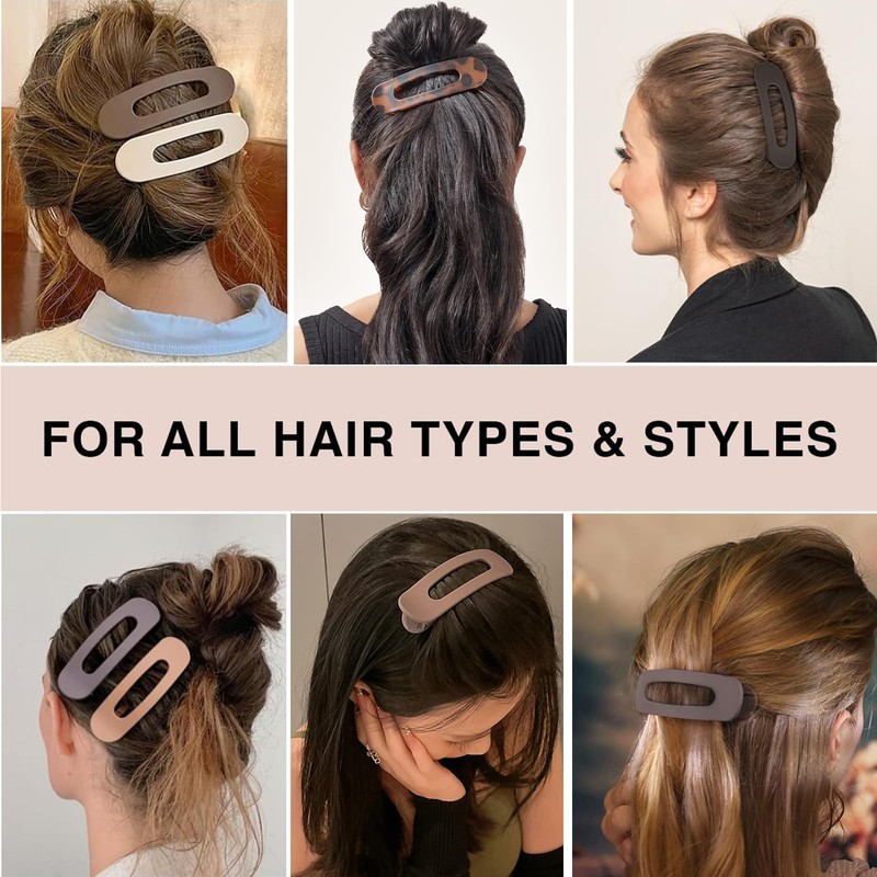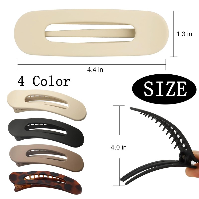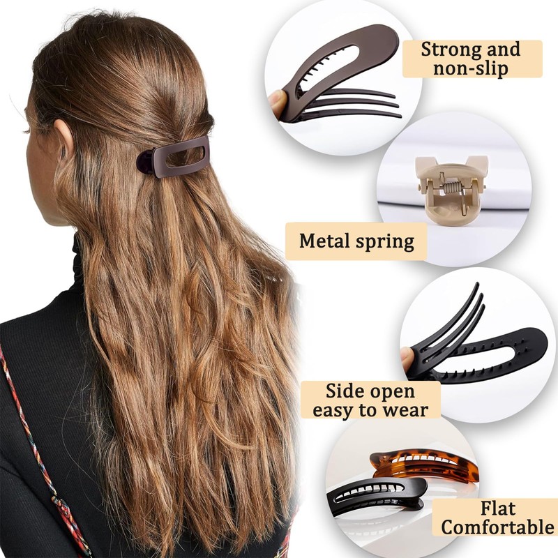 - Stylish and Functional: This set includes 4 PCS flat claw clip in black, cream, beige, and amber, complementing any outfit or hairstyle; Ideal for creating sleek updos, casual half-up styles, or quick on-the-go fixes.