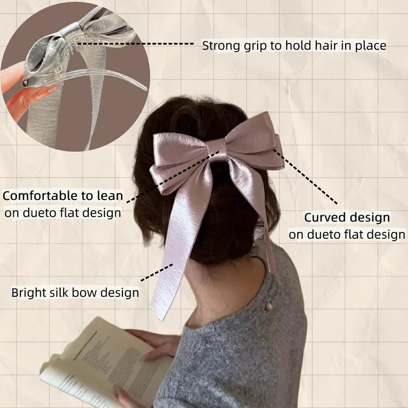 Flat Hair Clips for Women, Cute Bow Non-slip Flat Claw Clips Bow Hair Claw,Lay Down Claw Clips Hair Accessories for Womenfor Girls Thin Thick Hair (4 PCS)