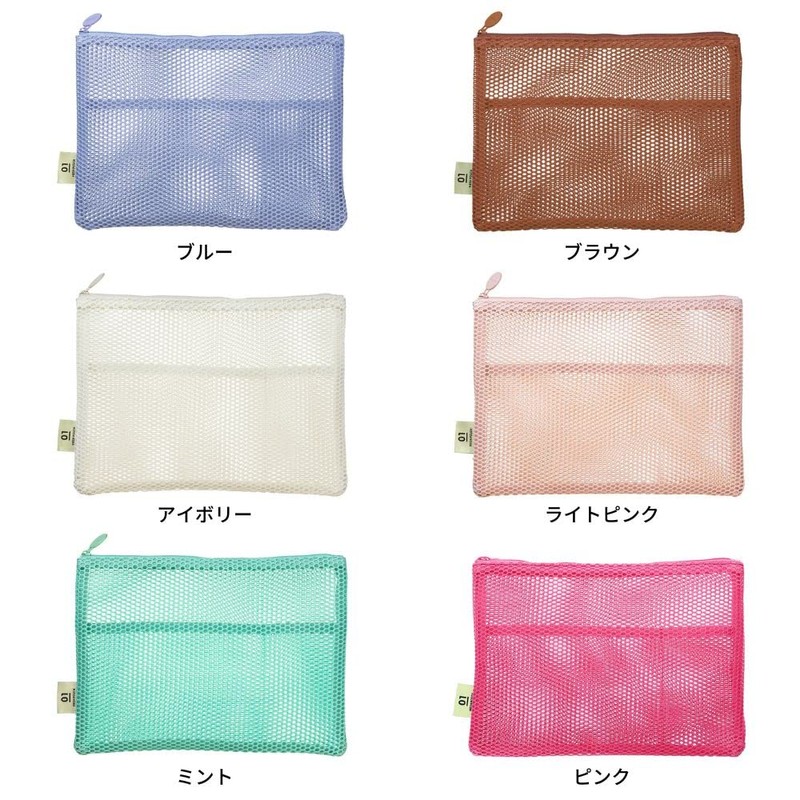 A5 size flat pouch with a loose mesh material.