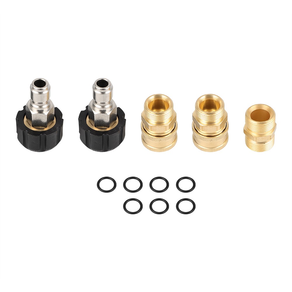 (2 M22 3/8 quick-connect brass connectors + 2 M22 3/8 quick-connect stainless steel male connectors + 1 extension connector)