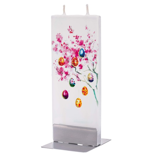 Flatyz Hand Painted Flat Candle| Unscented, Dripless, Smokeless, Decorative | Easter Tree | Double Wick with Metal Base | Unique Gift Idea and Home Décor Accent
