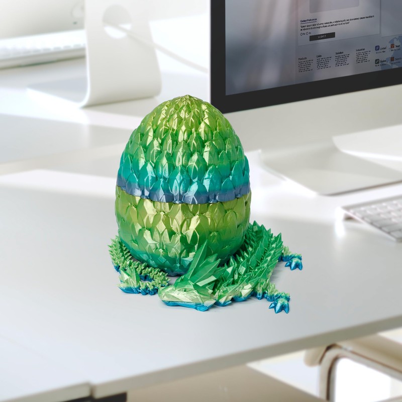 Flavery Dragon Egg - 12 inch Dragon in Egg, Easter Egg, 3D Printed Flexible Dragon Fidget Toy, Dragon Collection, Figure Decor(Green Mix Blue)