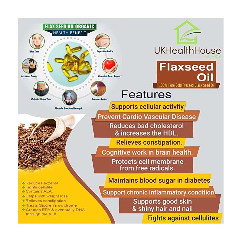 • Flaxseed Oil is one of the richest source of Omega 3 & 6 & 9 essential fatty acids, around twice as much Omega 3 than a gram of fish oil.
