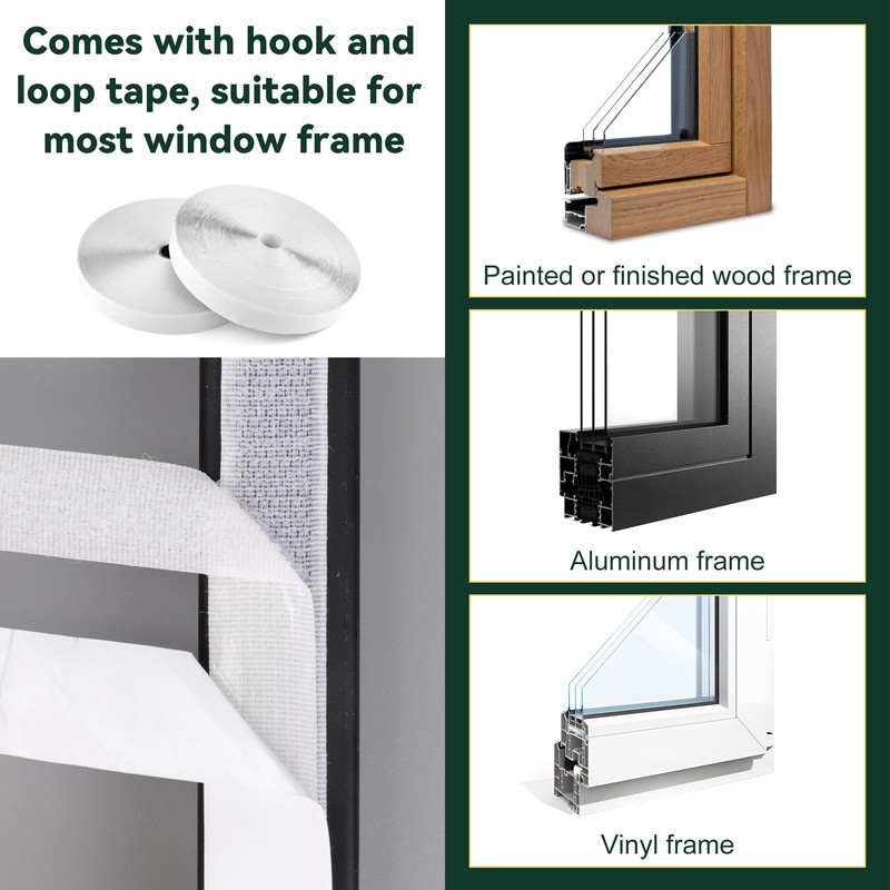 • Simple Installation: Just trim the window insulation film to size, attach hook & loop tape, and apply the film to the window frame.