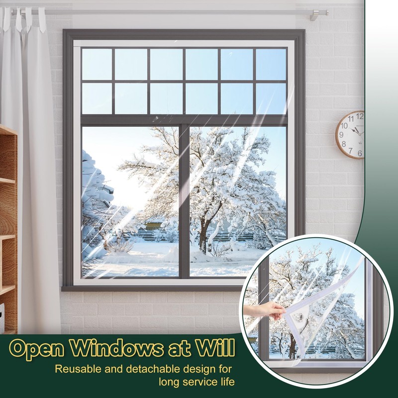 • Adjustable and Reusable: The plastic window insulation film can be cut to fit different window sizes, and the hook and loop tape allows for easy installation and removal.