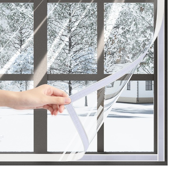 Flehomo 200 x 200 cm Window Insulation Kit, Adjustable Window Film with Hook and Loop Tape, Window Cover to Keep Warm in Winter and Cool in Summer, Reusable Plastic Window Wrap (79 x 79 Inch)