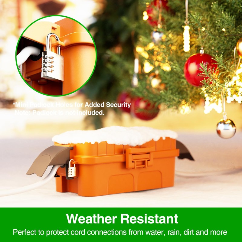 - 【Easy to Use】 Simply place the connections into the waterproof box, secure the cord with the clamps, wrap it with the rubber seal, and then close the box. There are two screw slots at the back of the electrical box, allowing you to easily hang it anywhere.
